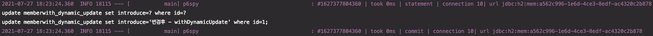 memberService.updateIntroduce(member.getId(), "변경후 - withoutDynamicUpdate");