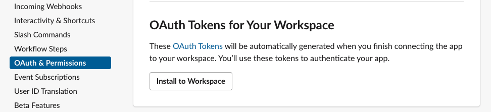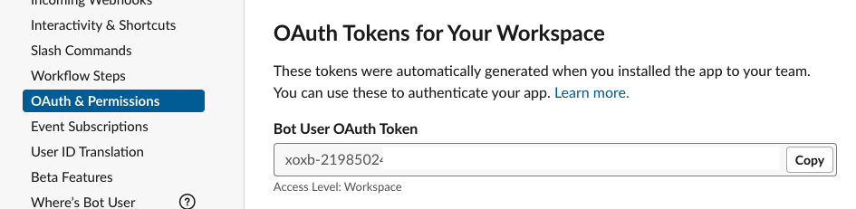 slack 도 비슷한 방식으로 내 앱을 등록하고 앱을 통해 토큰을 생성할 수 있습니다.