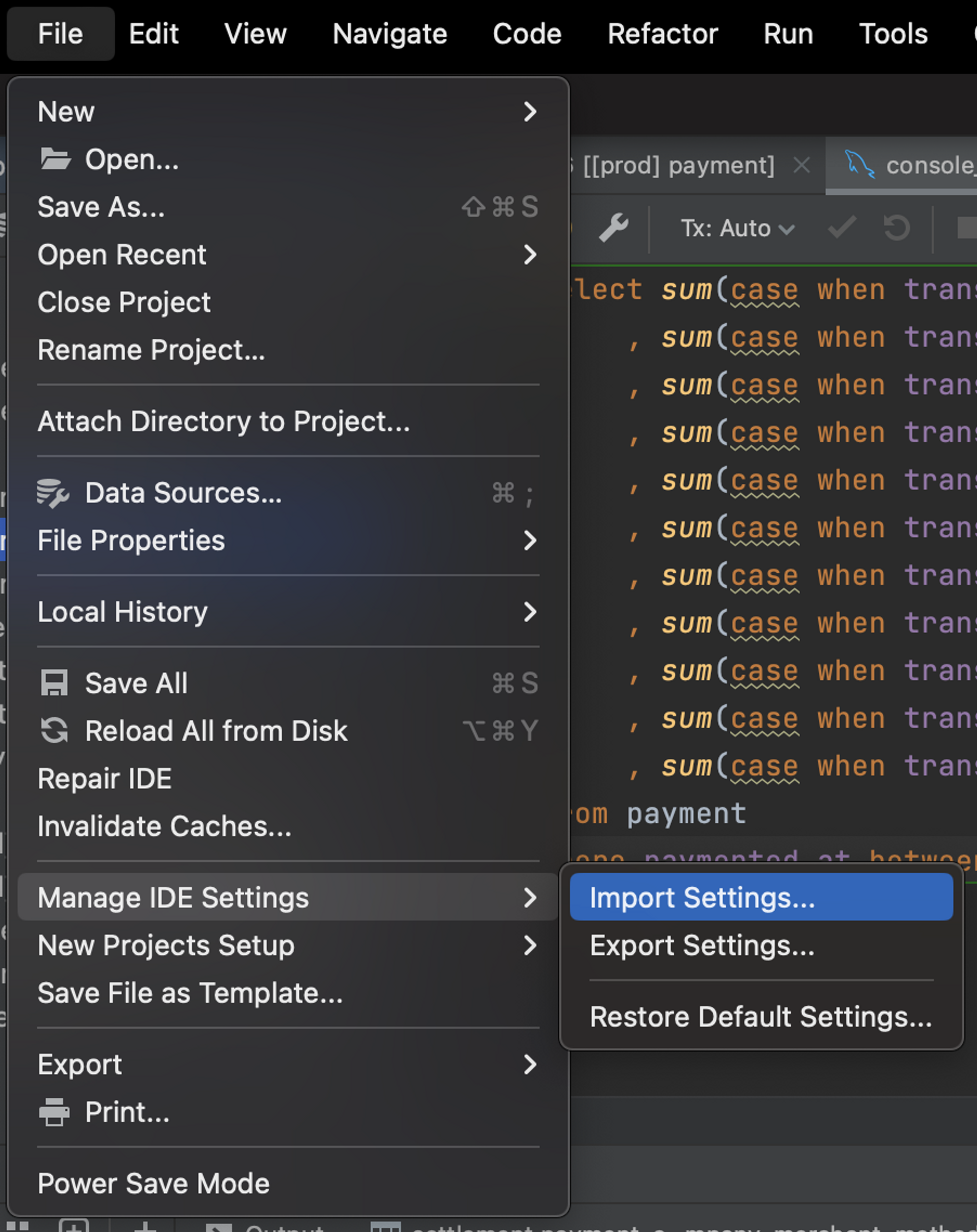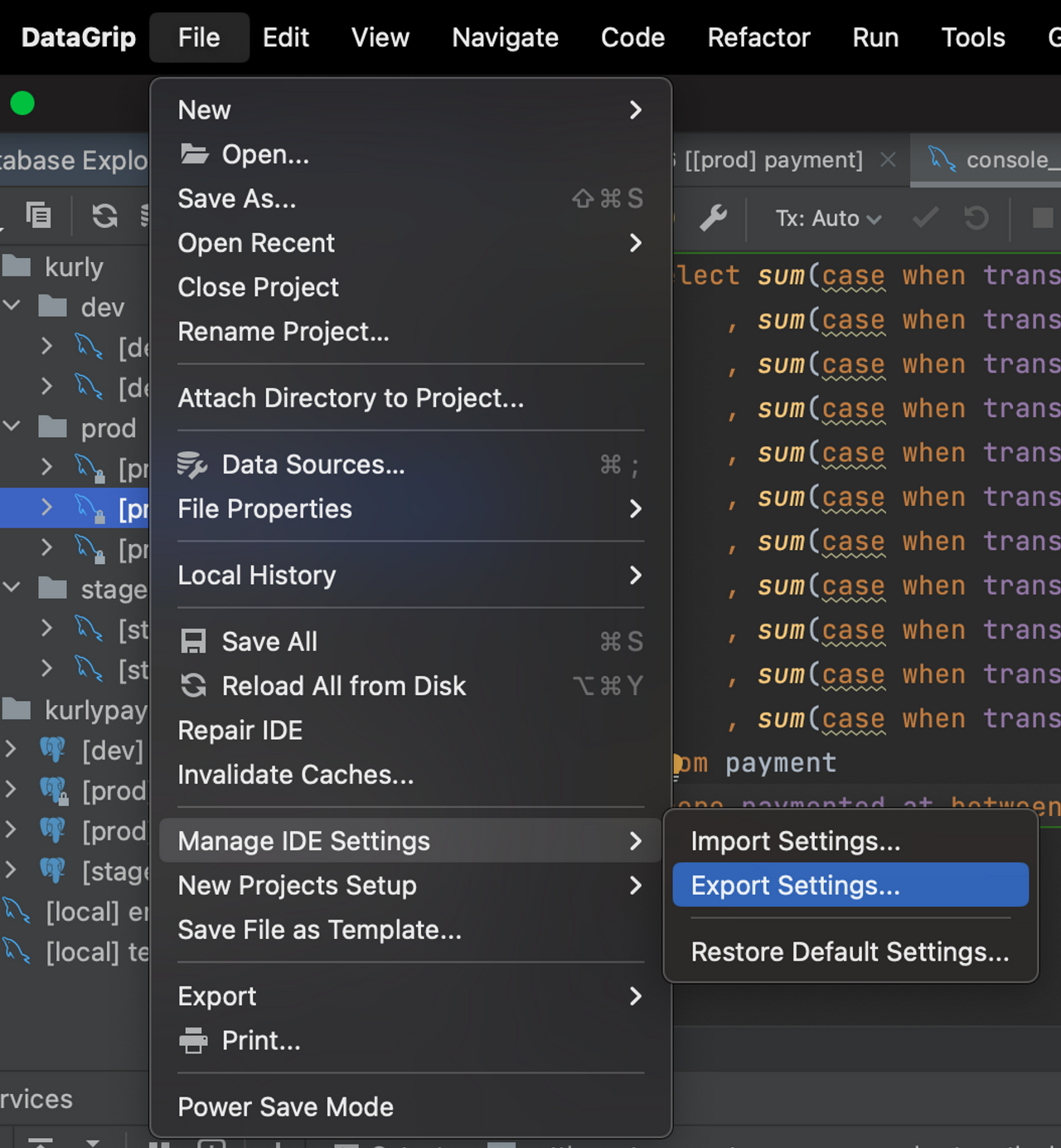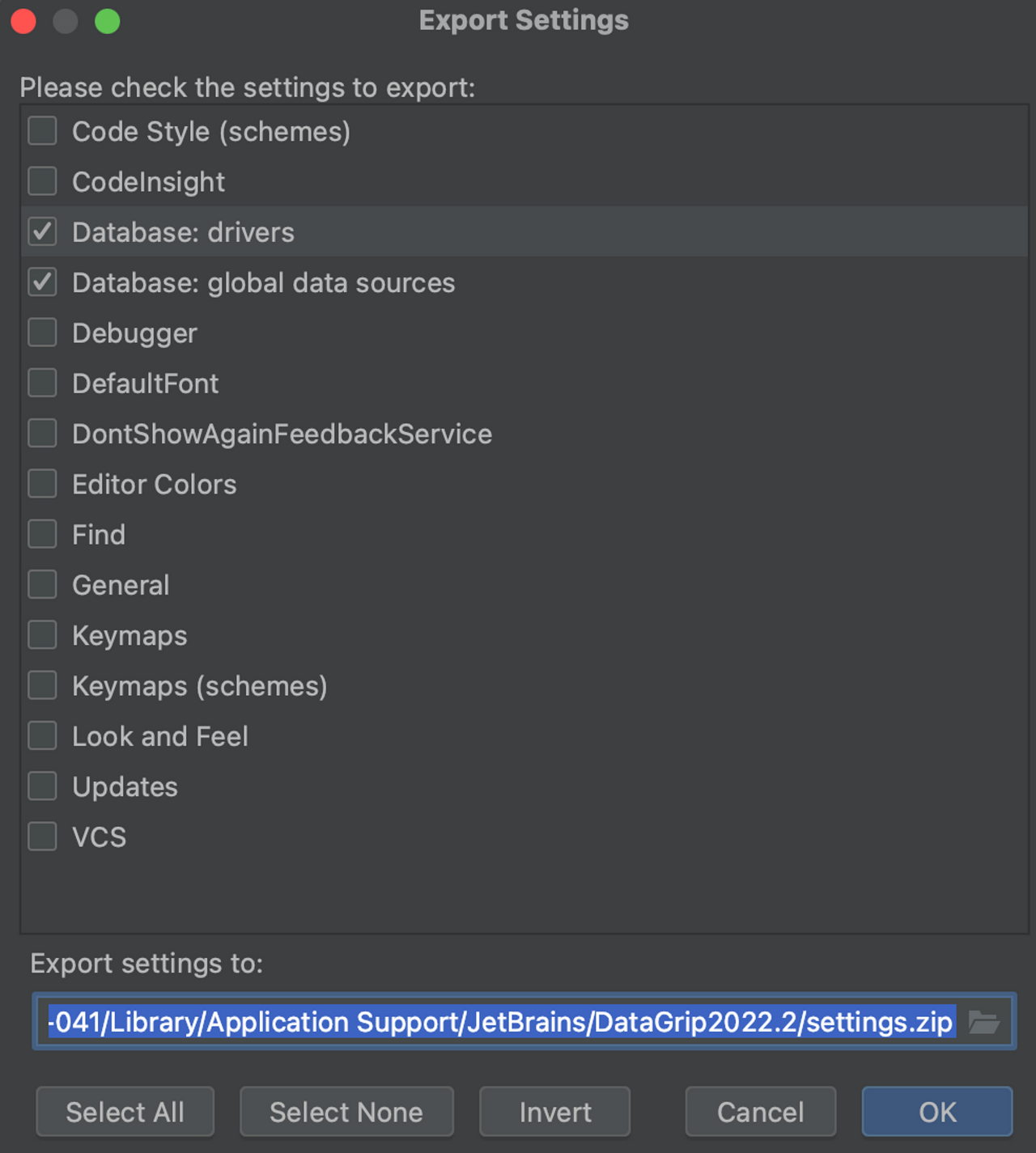 Datagrip 은 Export Settings 이라는 좀 더 똑똑한 방법을 지원합니다.